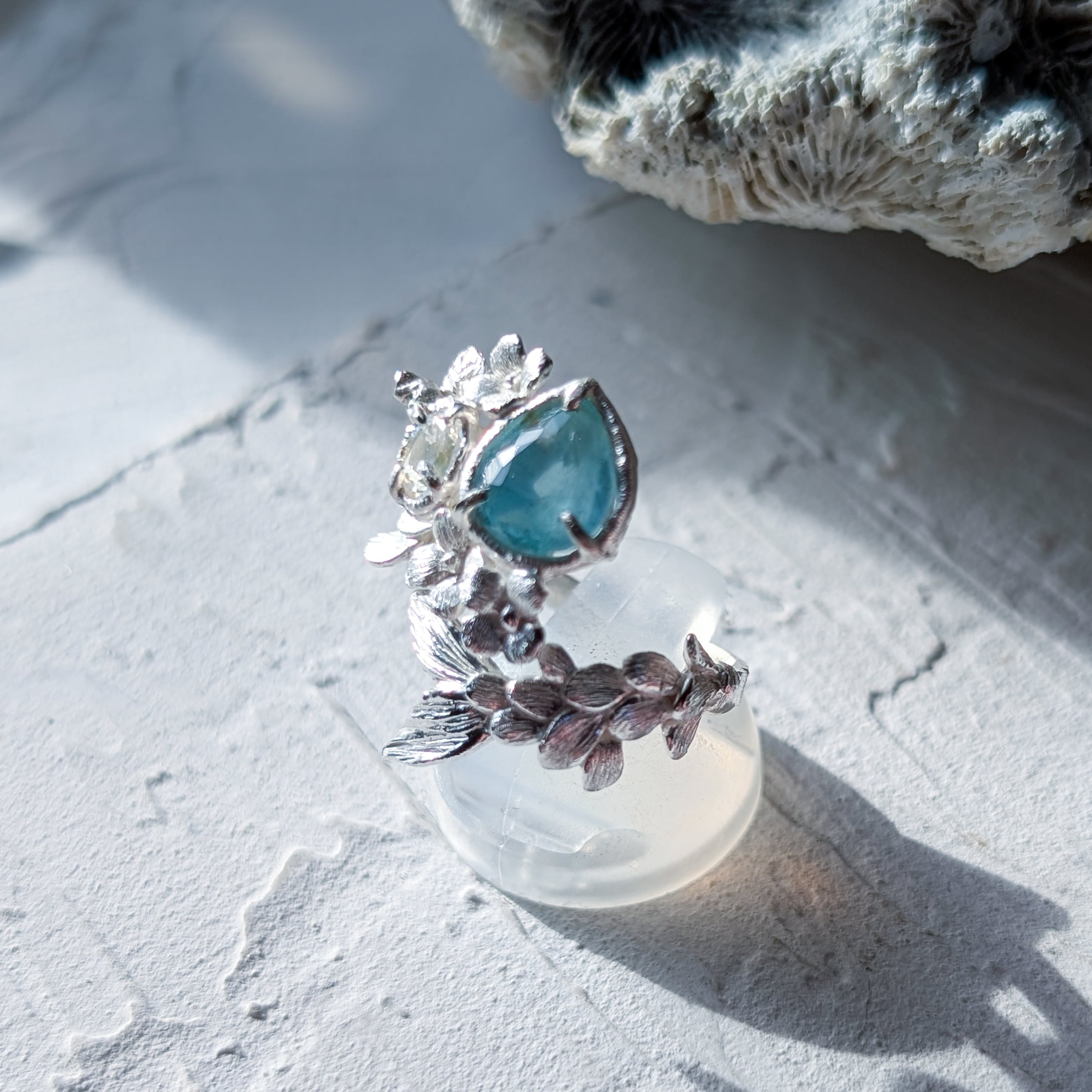 人魚が海に漂う花を集め、そっと束ねた花束をかたちにした指環。